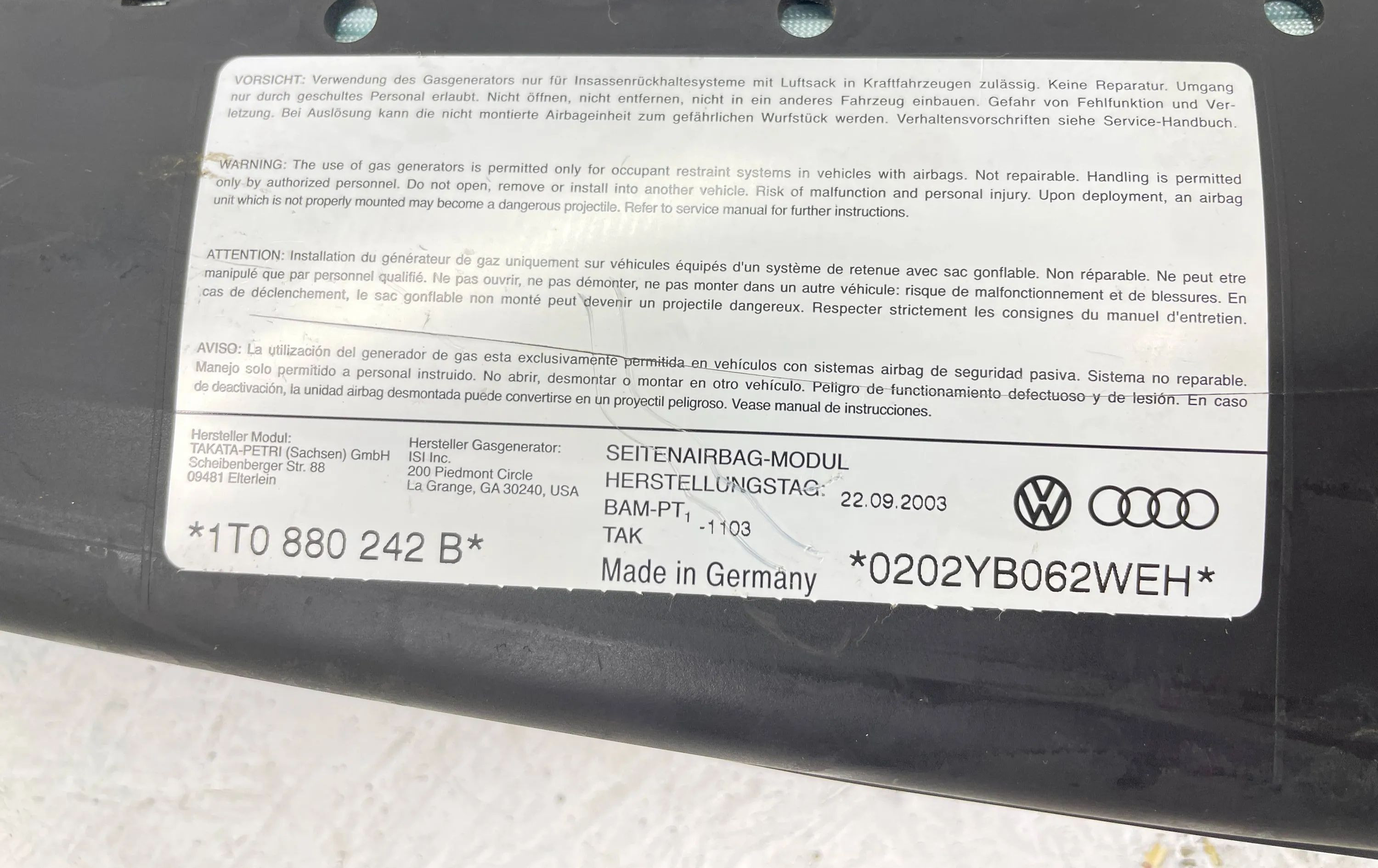 Подушка безопасности в сиденье 1T0880242B Volkswagen Touran I