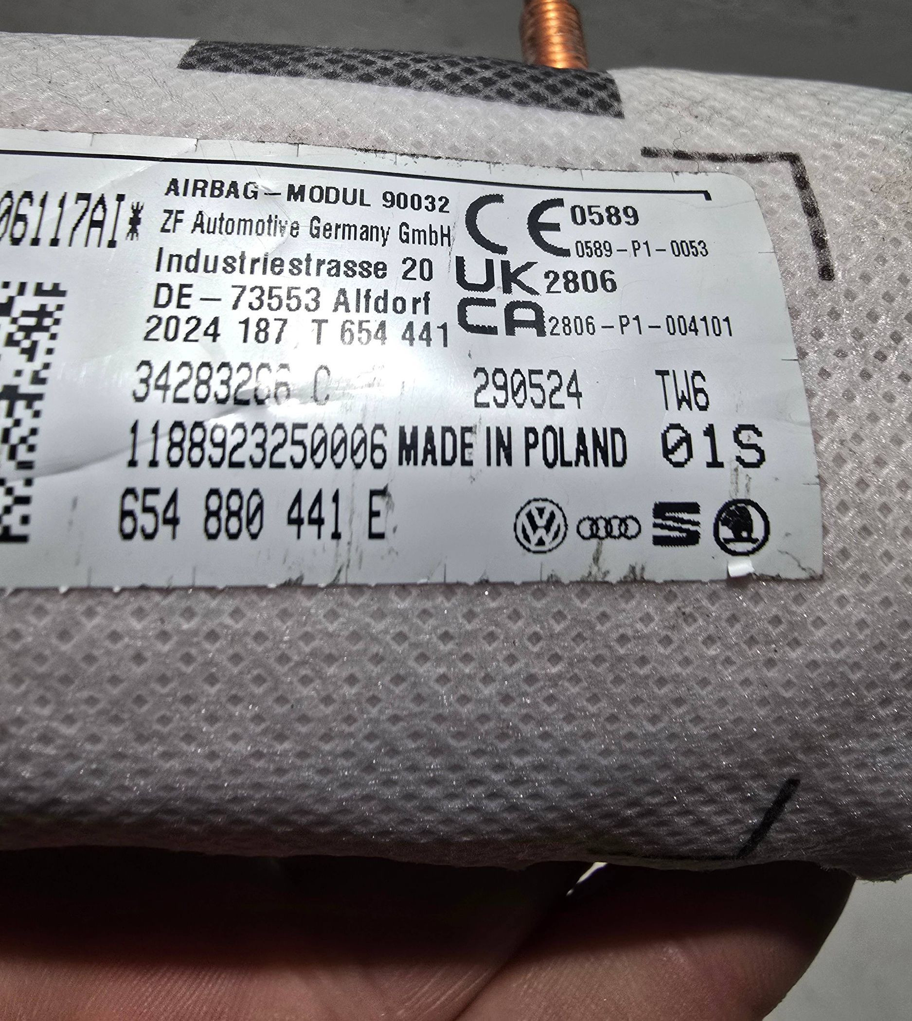 Подушка безопасности в сиденье 654880441E, 34283286C Skoda Scala