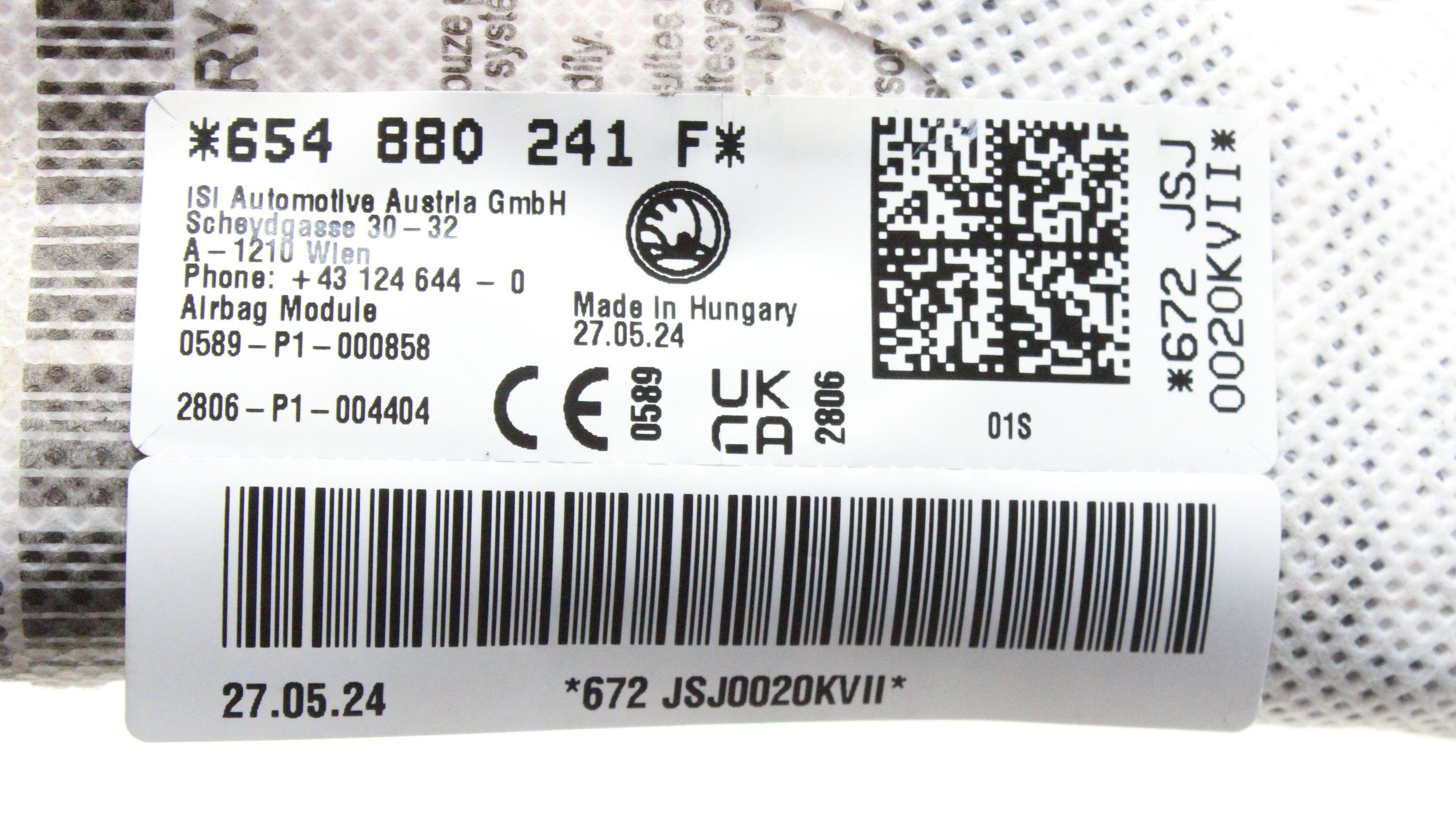 Подушка безопасности в сиденье 654880241F Skoda Scala
