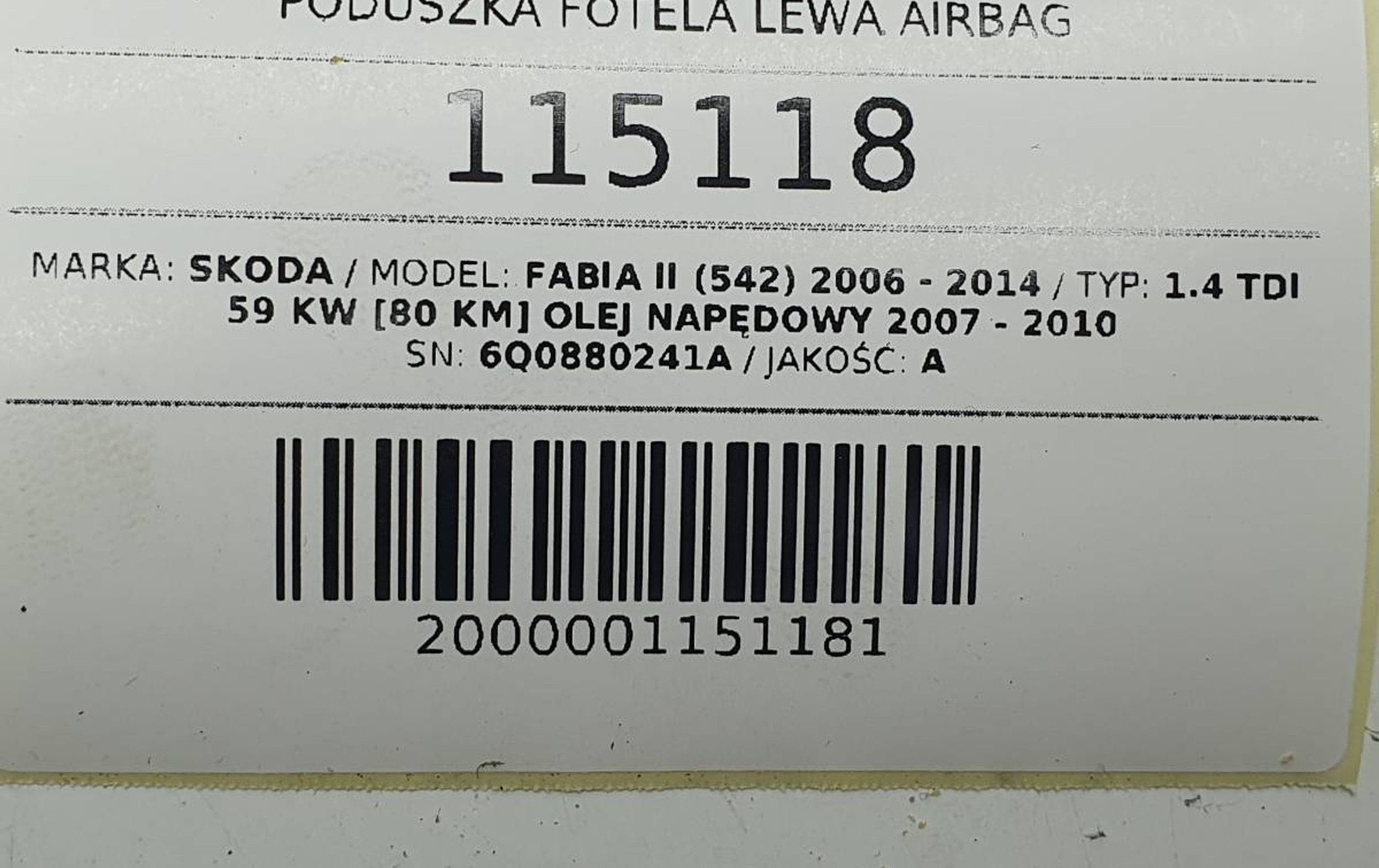 - Модель: Fabia Mk2 (5J)