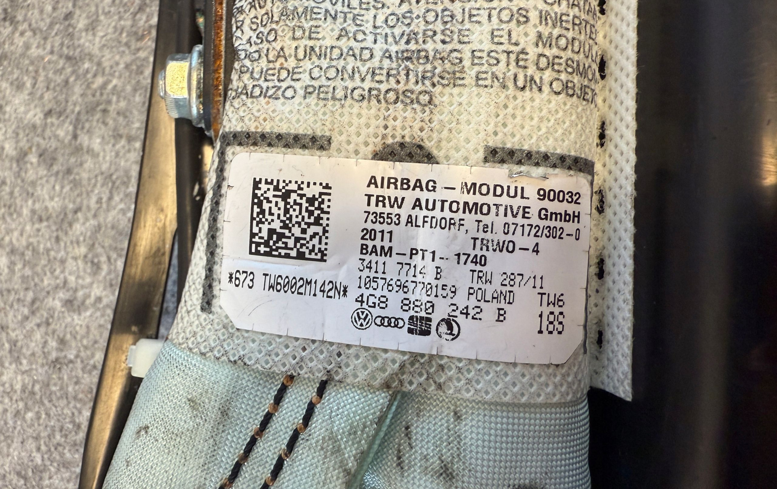 Подушка безопасности в сиденье 4G8880242B4G, 4G8880242B Audi A7 S7 4G