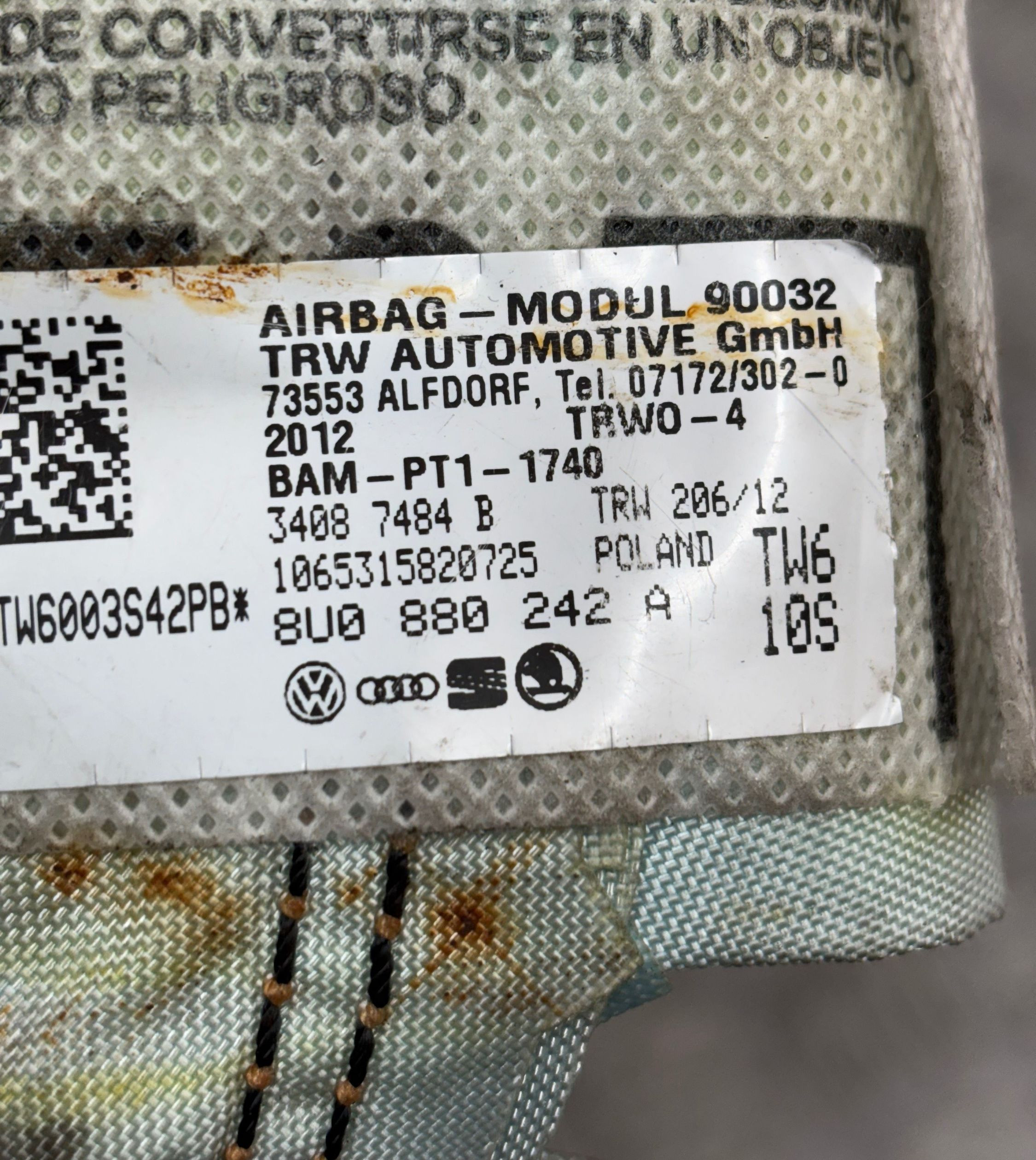 Подушка безопасности в сиденье 8U0880242A, 071723020 Audi Q3 8U