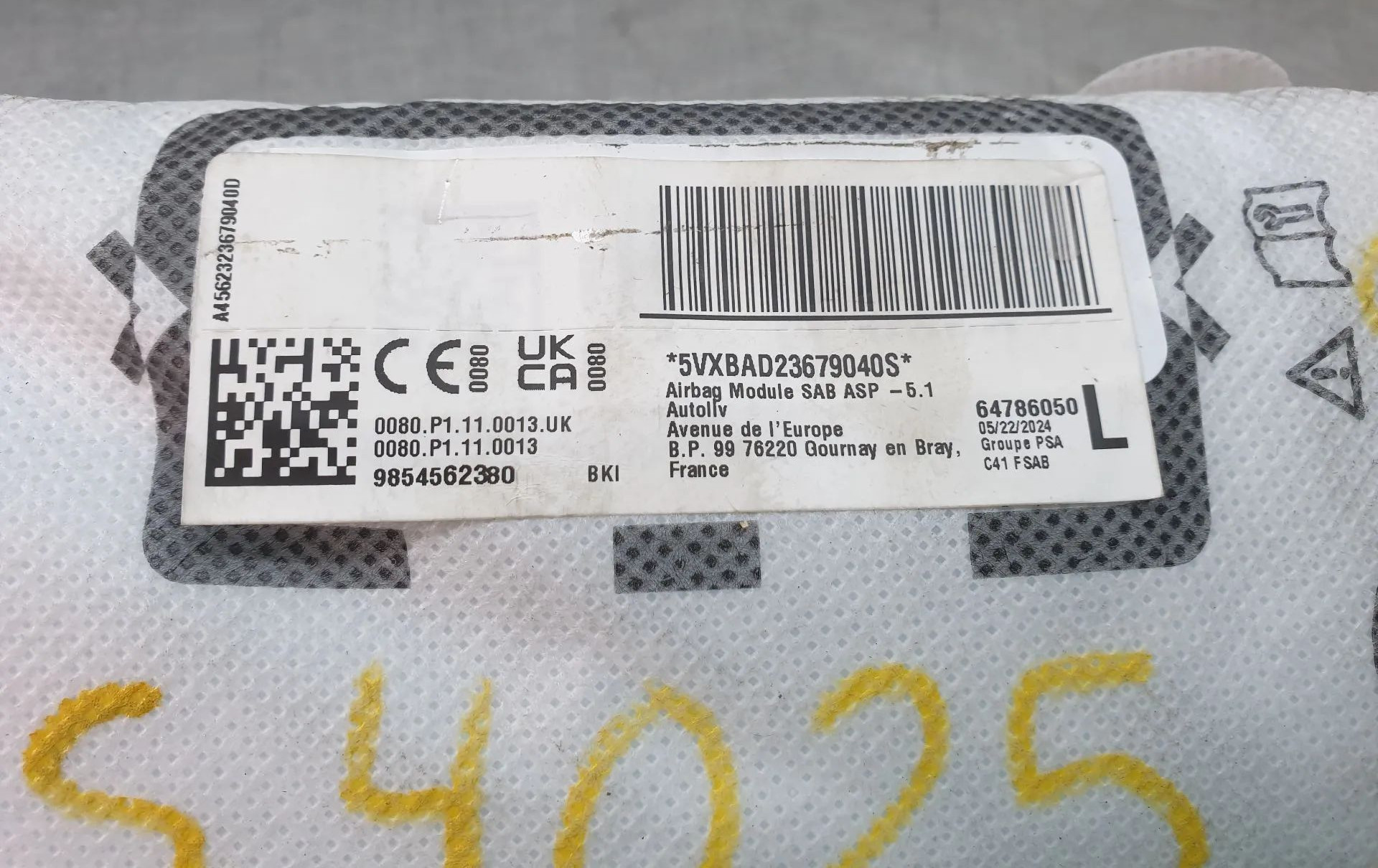 Подушка безопасности в сиденье 9854562380, 64786050 Citroen C4 III e-C4