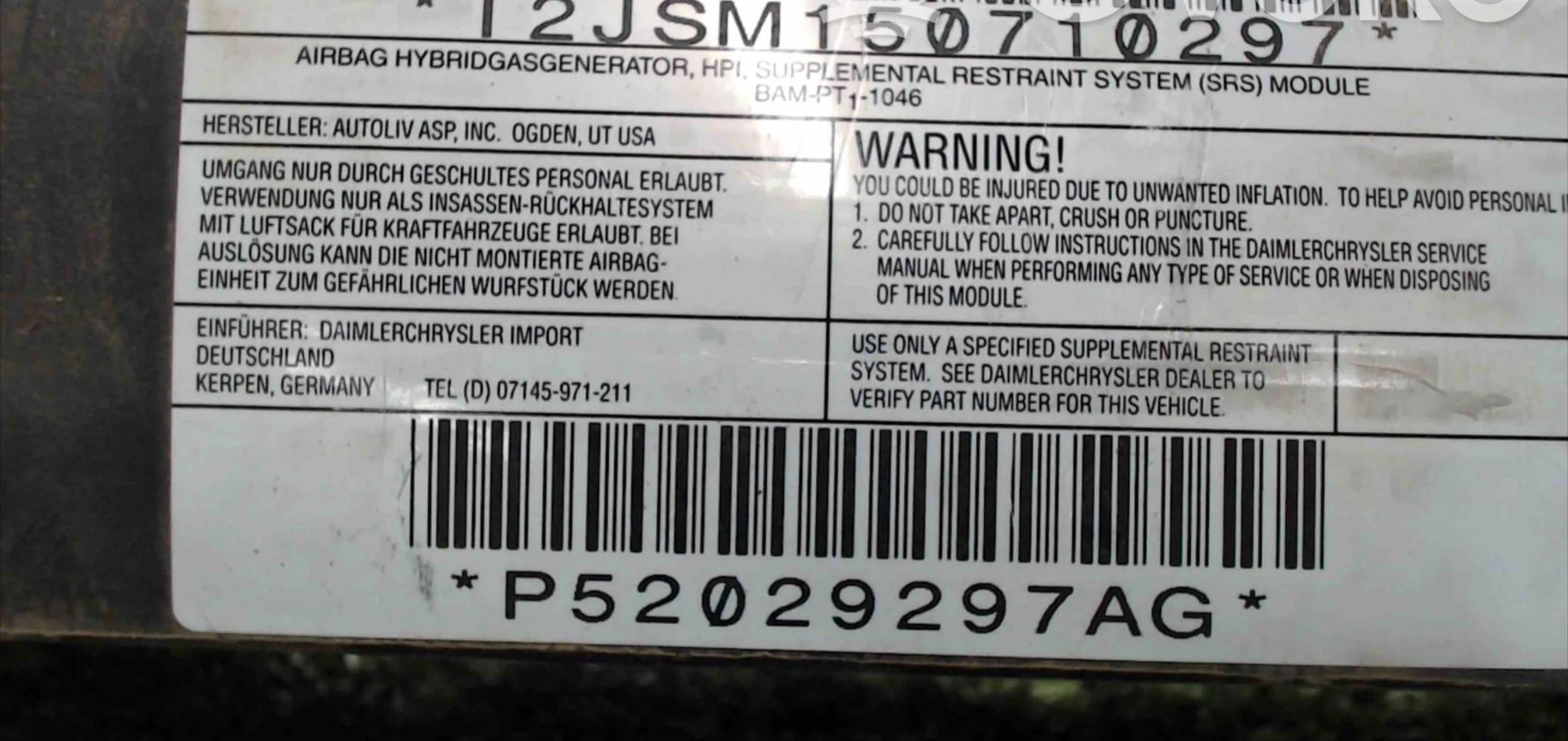 Подушка безопасности двери 6062213LH Jeep Grand Cherokee (WK)