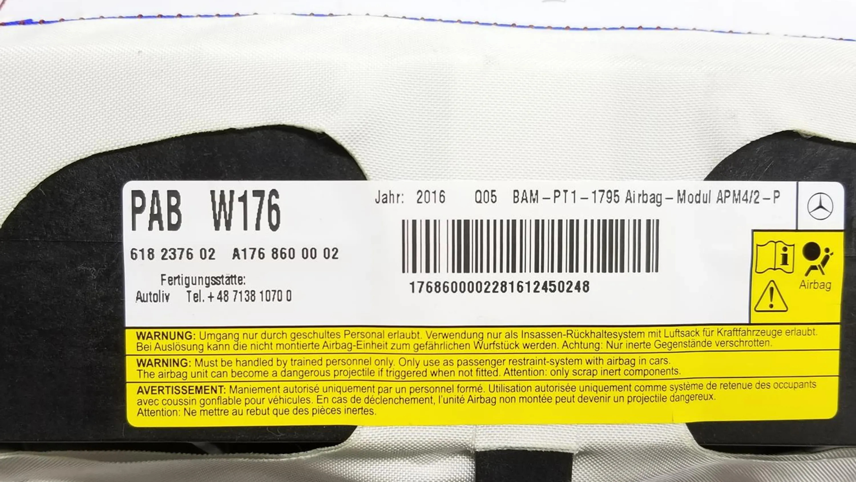 DASHBOARD: A1176800801 AIRBAG CONDUCTIVE: A0008601000 AIRBAG ACCOMPANYING: A1768600002 AIRBAG KNEE: A1768600000 RING AIRBAG: A2469004120 SWITCHBOARD AIRBAG: A1179001801 PRETENSORES: A1768602185 A1768602285