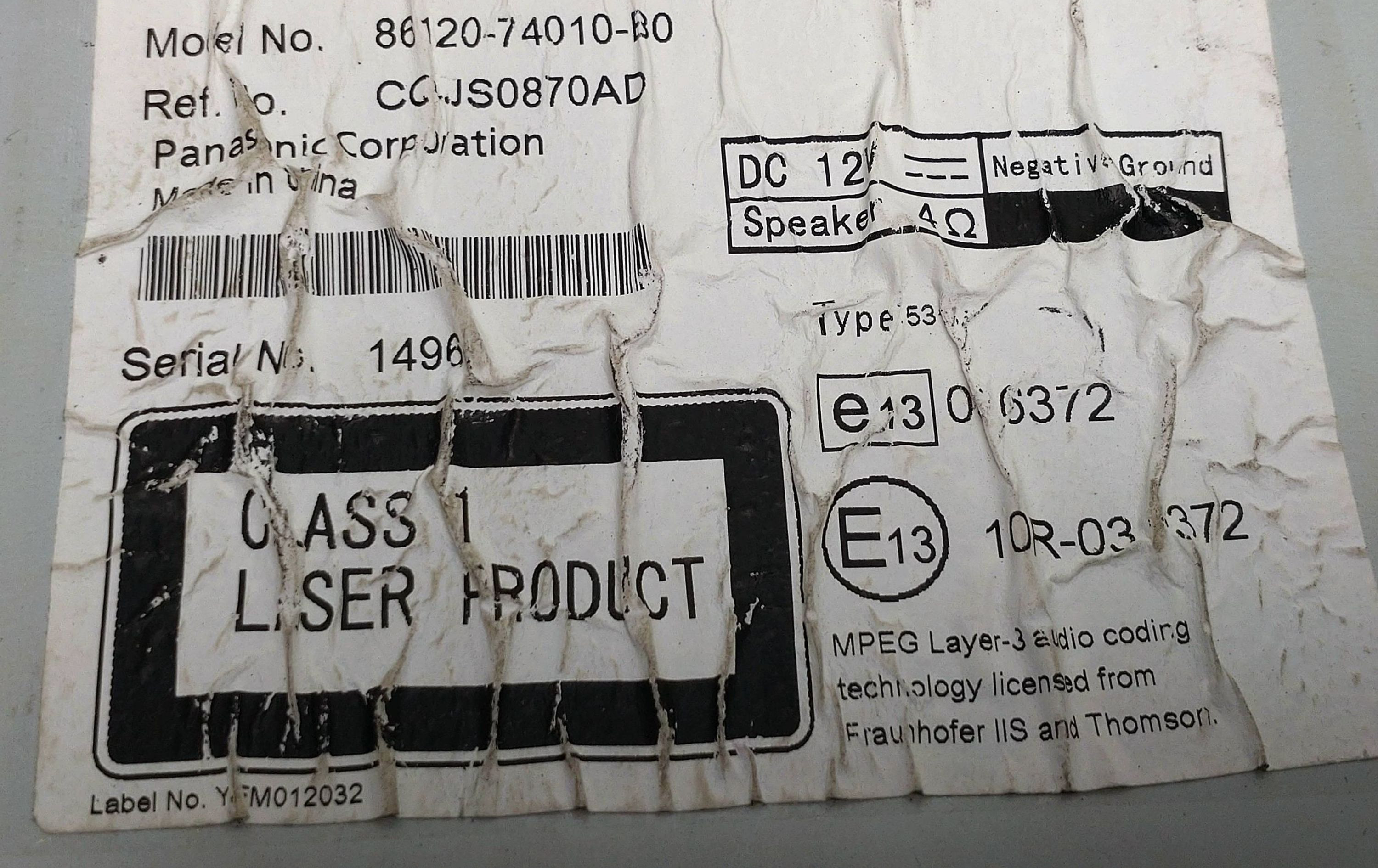 - Код производителя: 86120-74010-B0