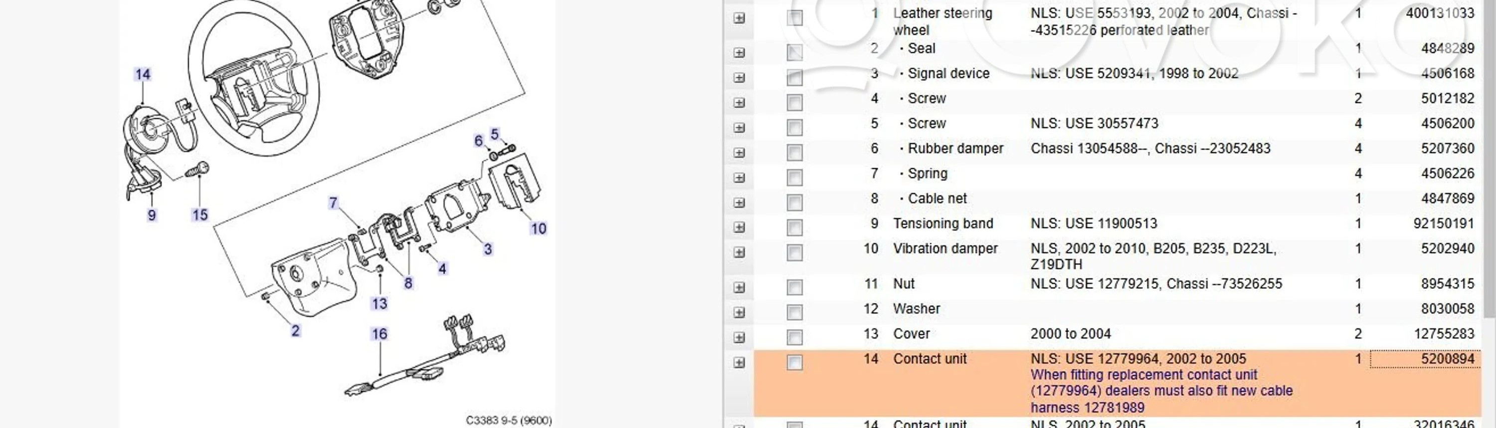 Подрулевой шлейф SRS 5200894 Saab 95 - 96