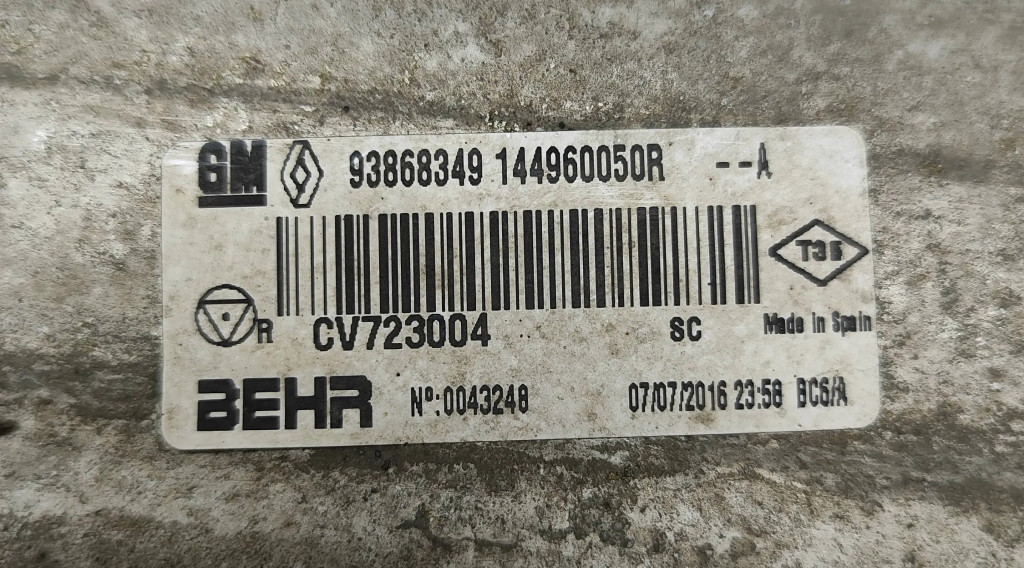 Интеркулер 144960050R, 93868349 Renault Trafic III (X82) 1.6