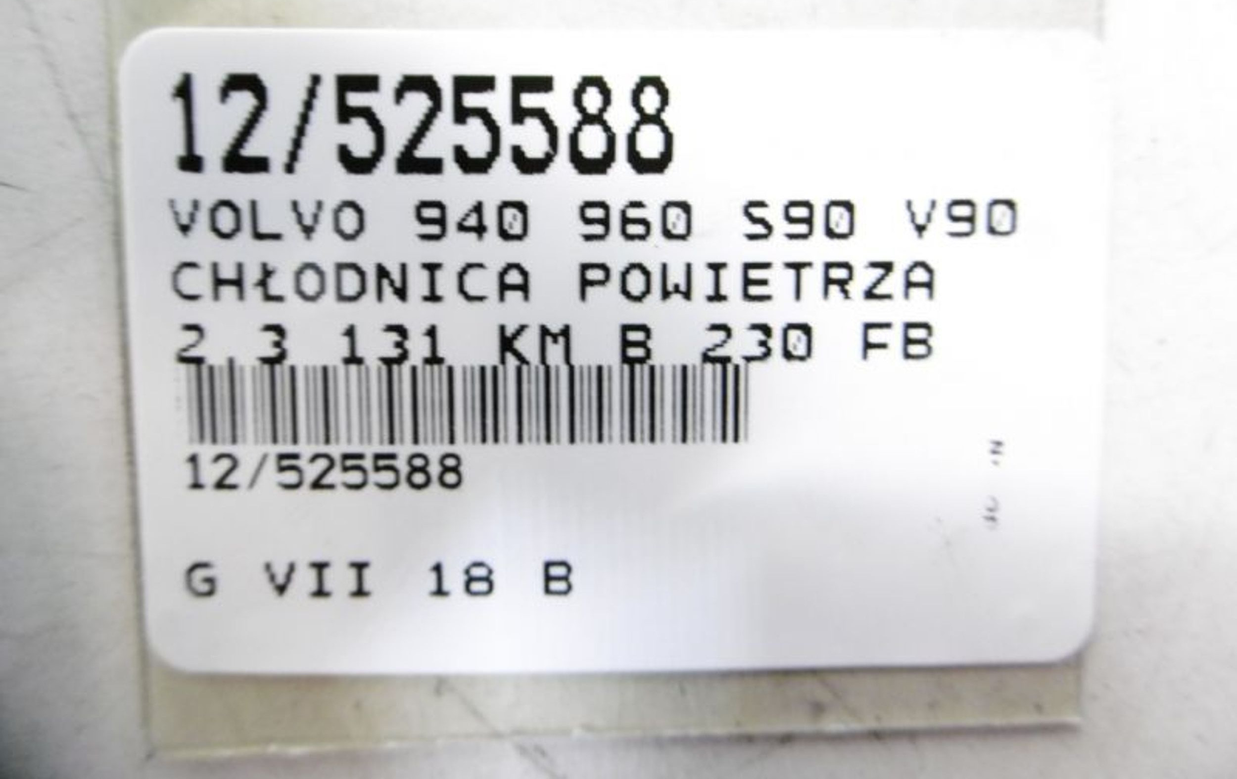Интеркулер 3507229, 3507229 Volvo 940