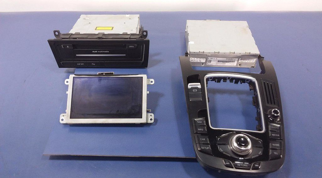 komplet nawigacji, czytnik 8T1035666E, tuner radia 4F0035053B, wyświetlacz 4F0919604, panekl sterowania MMI 8T0919609F, widoczne ślady użytkowania, -jakość B && AUDI A5 8T A4 B8 RADIO NAWIGACJA MMI 3G HIGH KPL kod koloru: LZ9Y kod silnika: CGKA