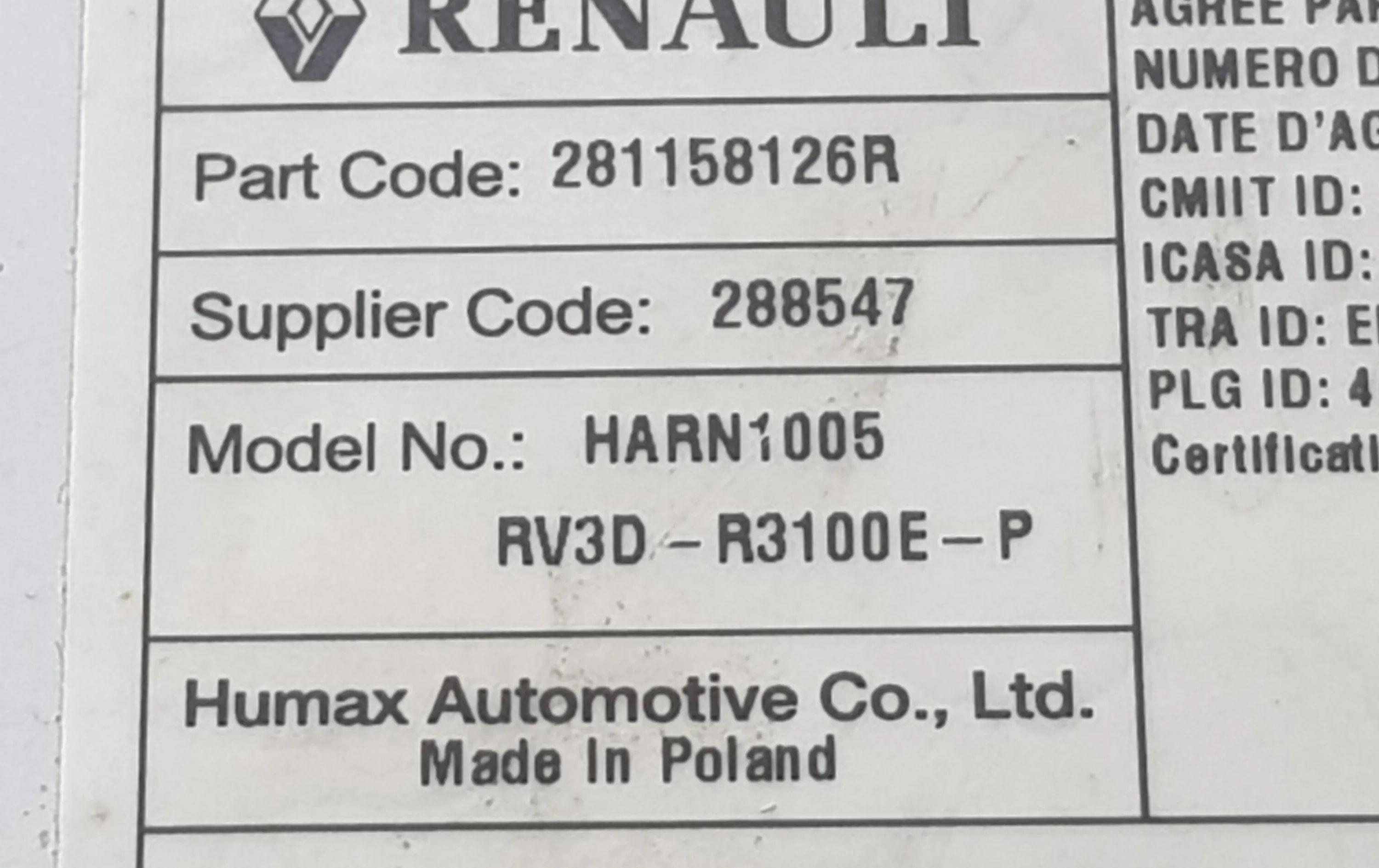 - Код производителя: 281158126R