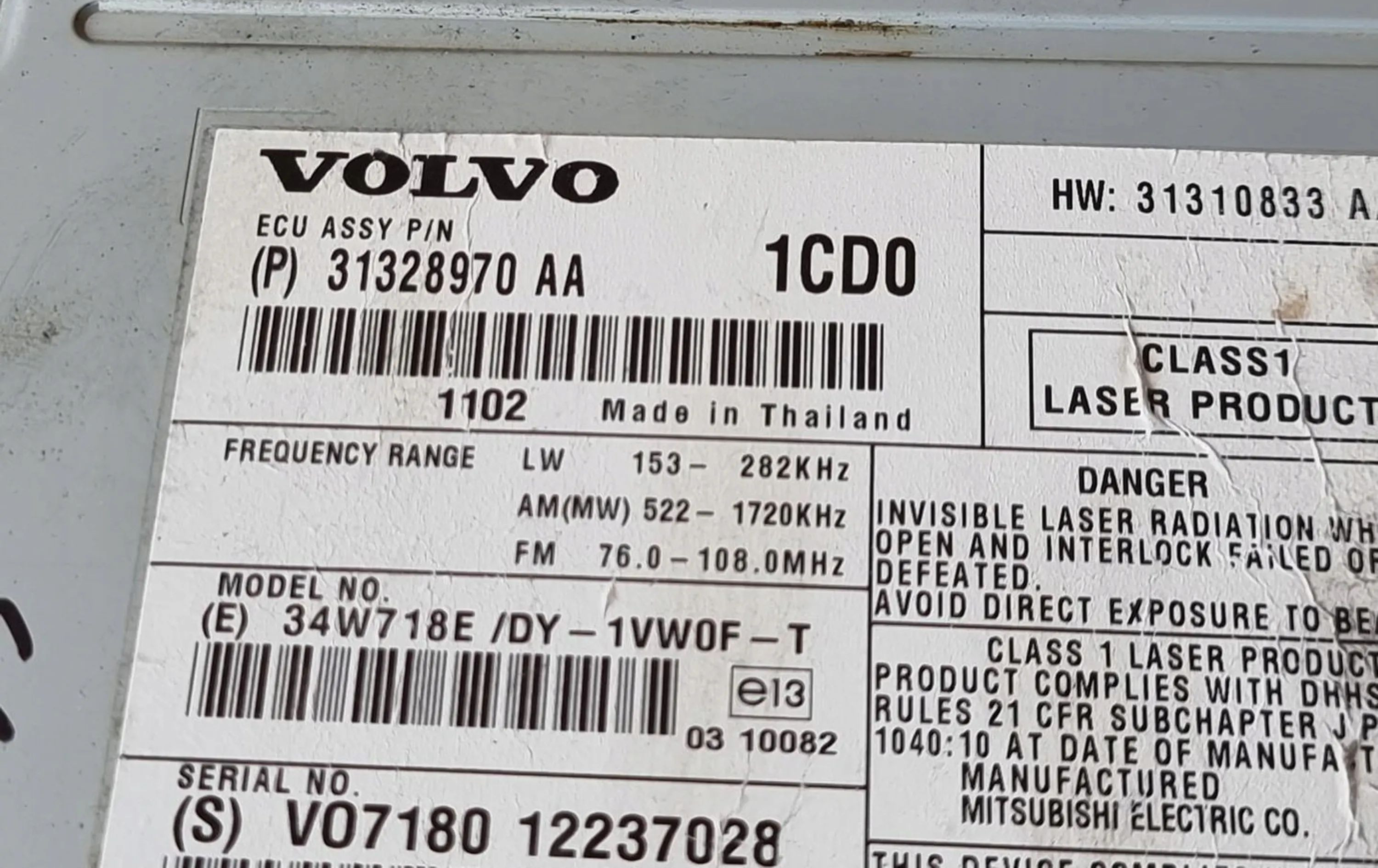 Радио/ проигрыватель CD/DVD / навигация 31328970 Volvo V60