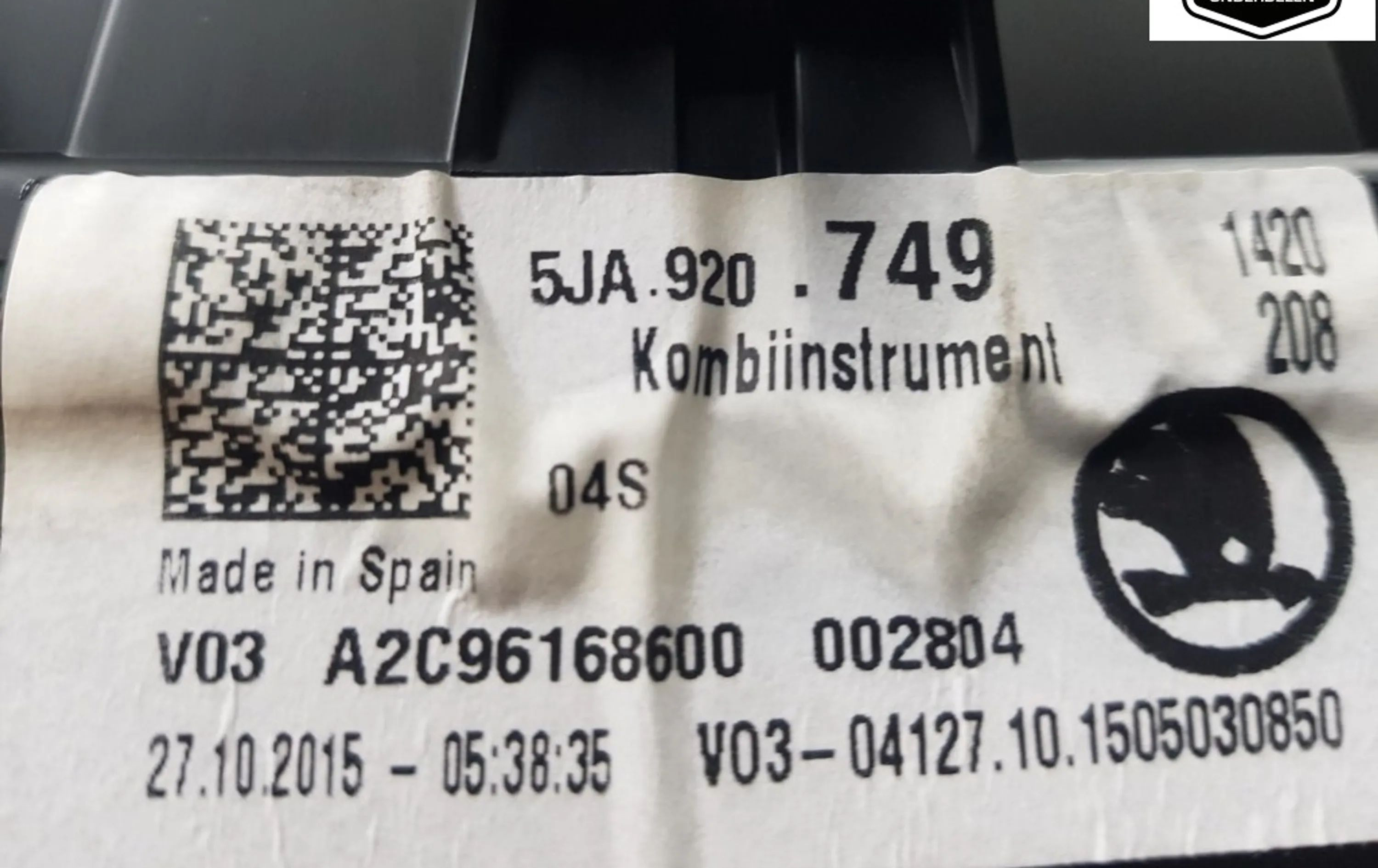 Панель приборов 5JA920749, 5JA920749 Skoda Rapid (NH)