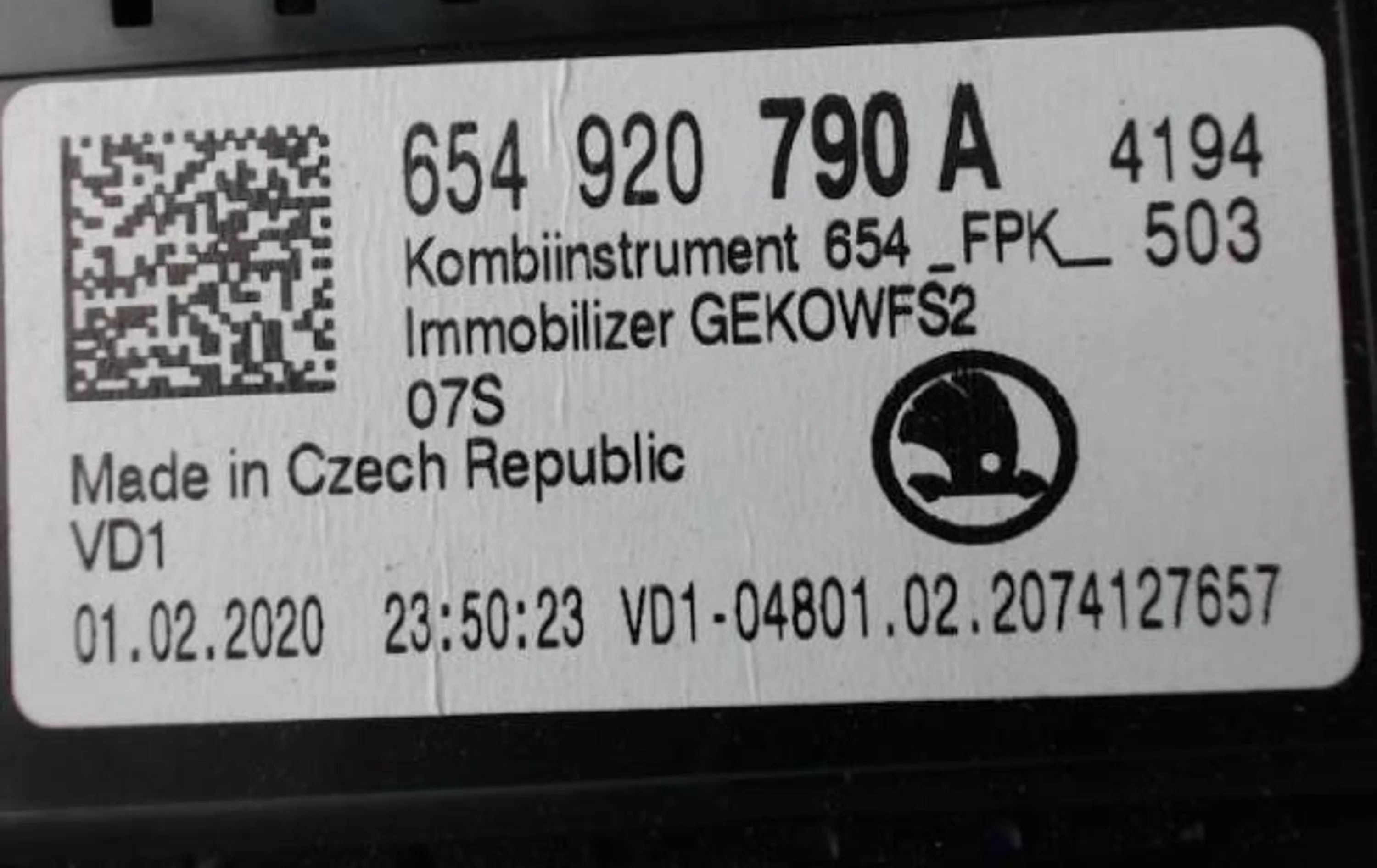 Панель приборов 654920790A, 654920790A Skoda Scala