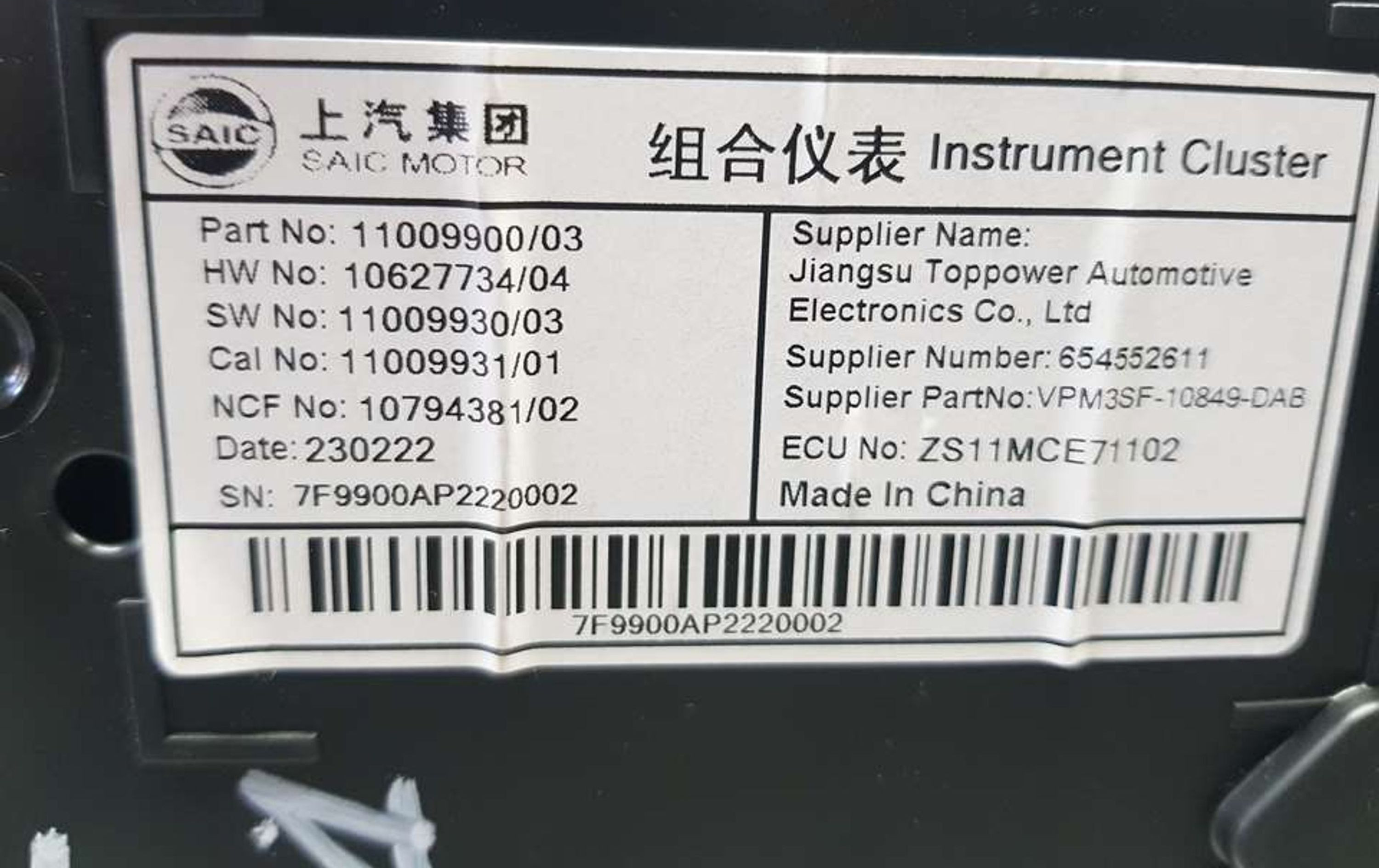 Панель приборов 1100990003, 1079438102 MG ZS