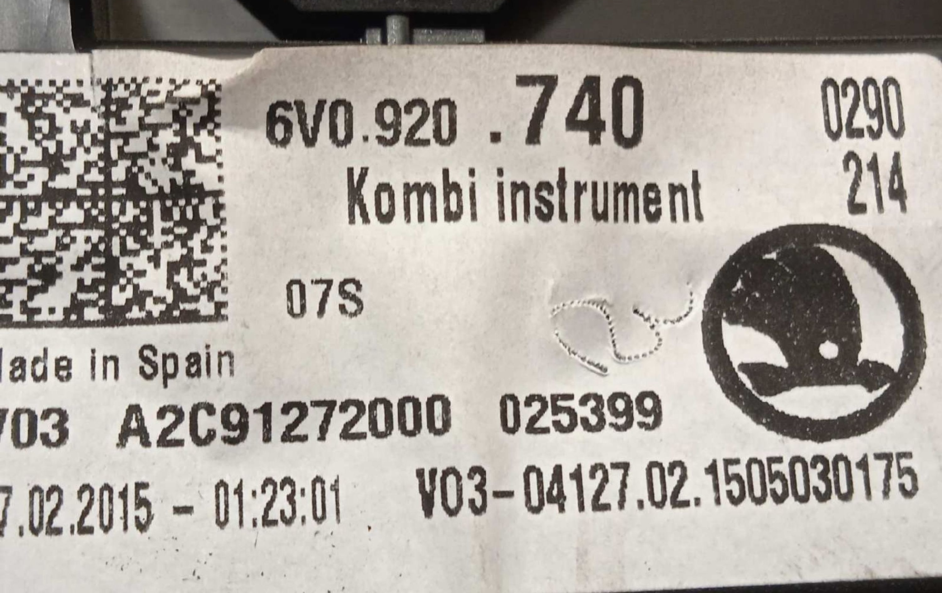 Панель приборов 6V0920740, A2C91272000 Skoda Fabia Mk3 (NJ)