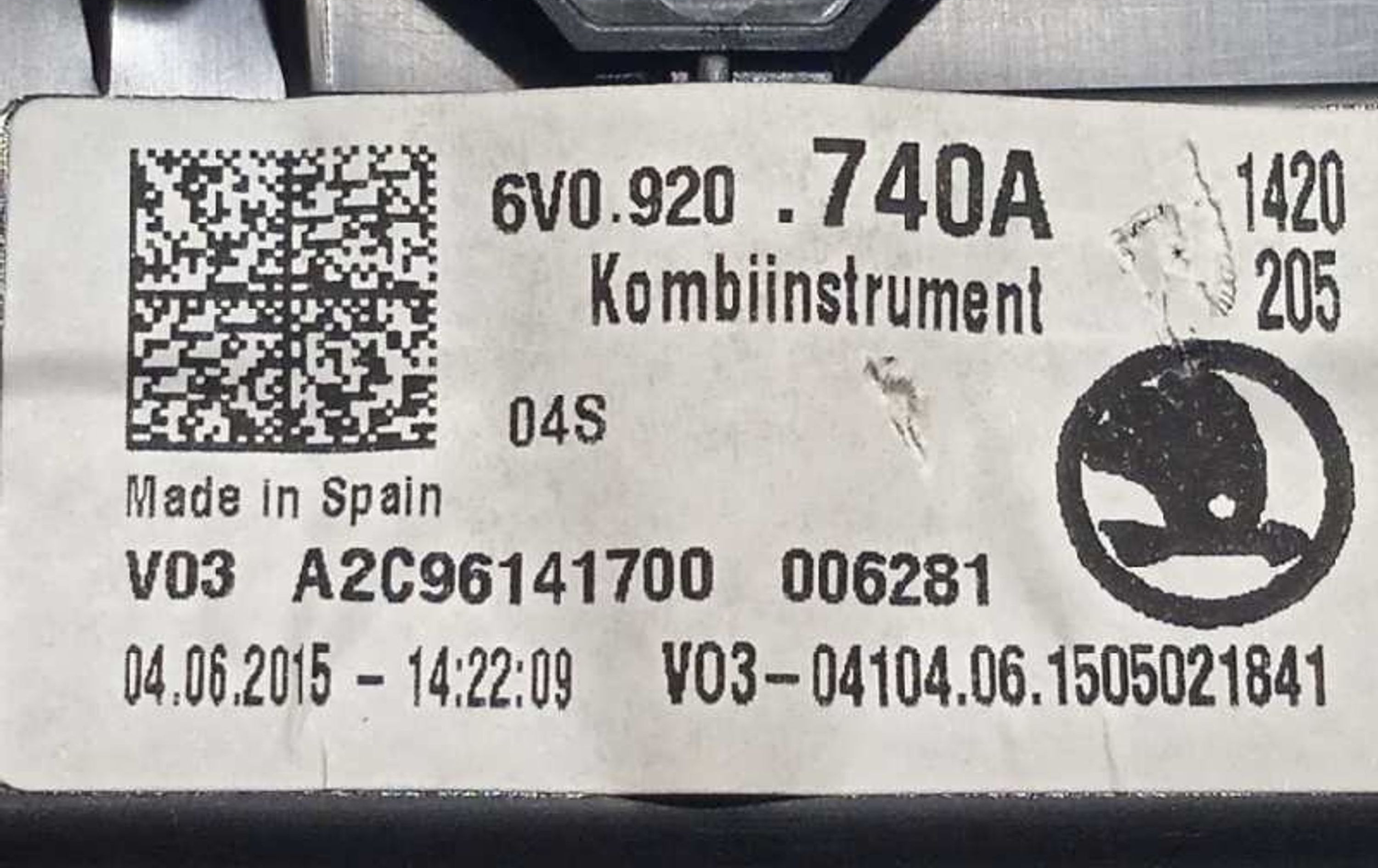 Панель приборов 6V0920740A, A2C96141700 Skoda Fabia Mk3 (NJ)