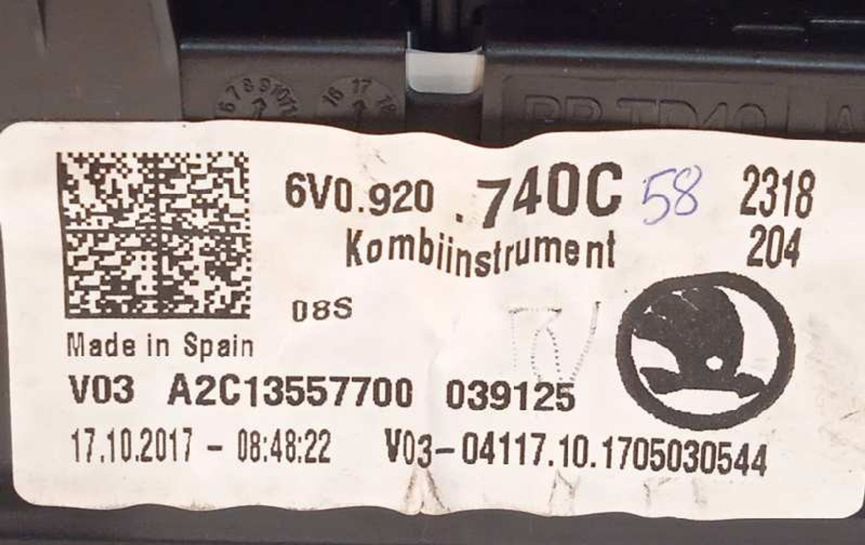 Панель приборов 6V0920740C, A2C13557700 Skoda Fabia Mk3 (NJ)
