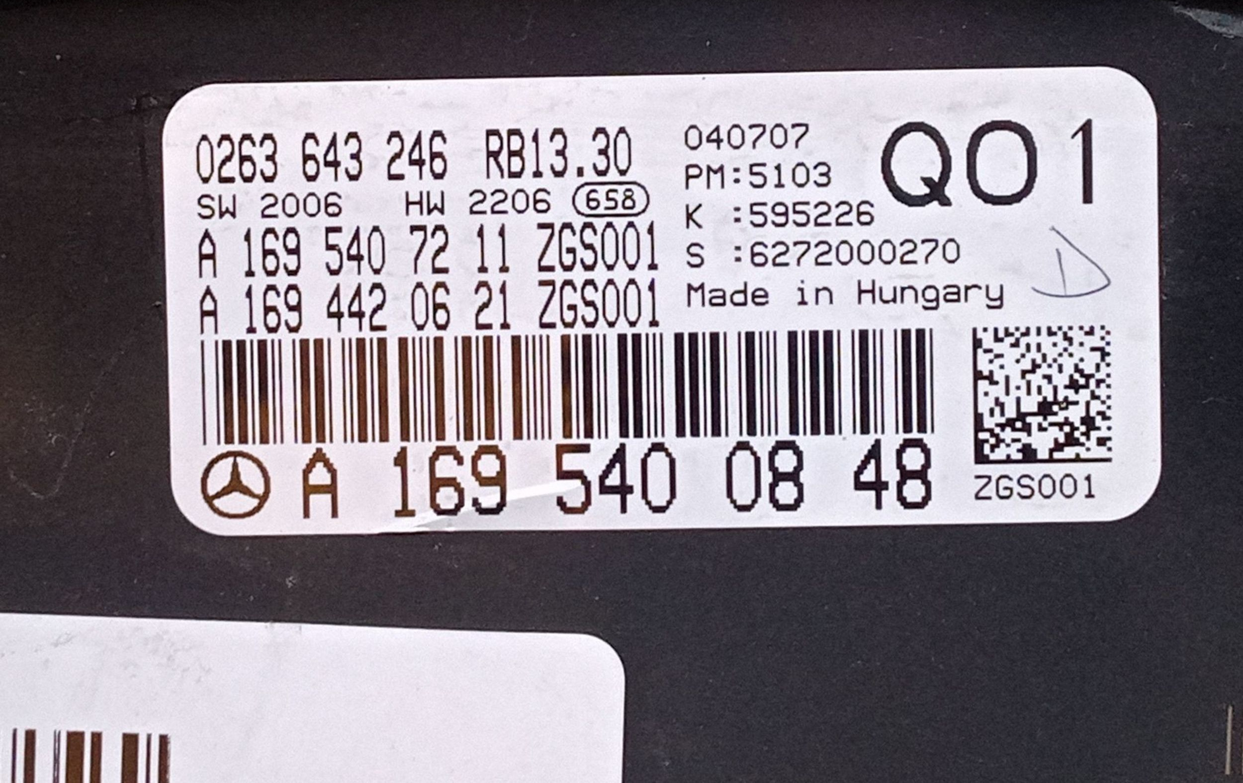 Панель приборов A1695400848, 105526KM Mercedes-Benz A W169