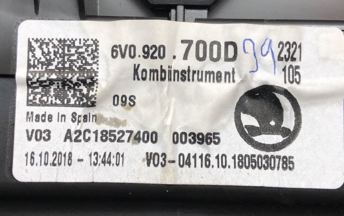 Панель приборов 6V0920700D Skoda Fabia Mk3 (NJ)