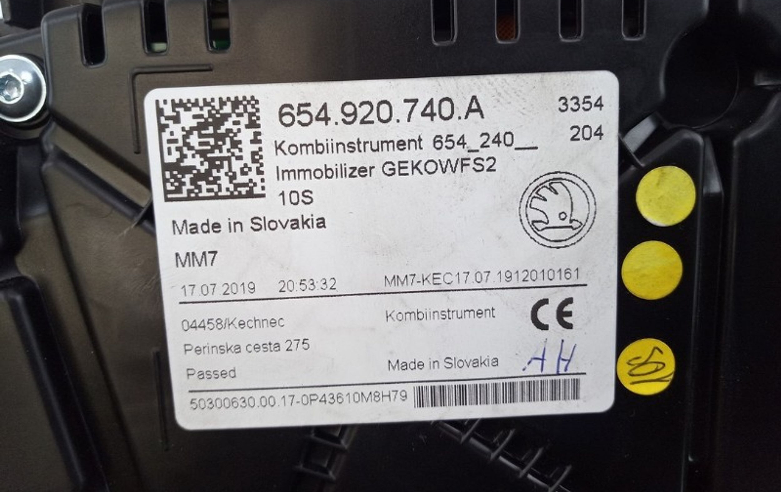 Панель приборов 654920740A, 654920740A Skoda Scala