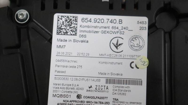 Панель приборов 654920740B, 654240 Skoda Scala