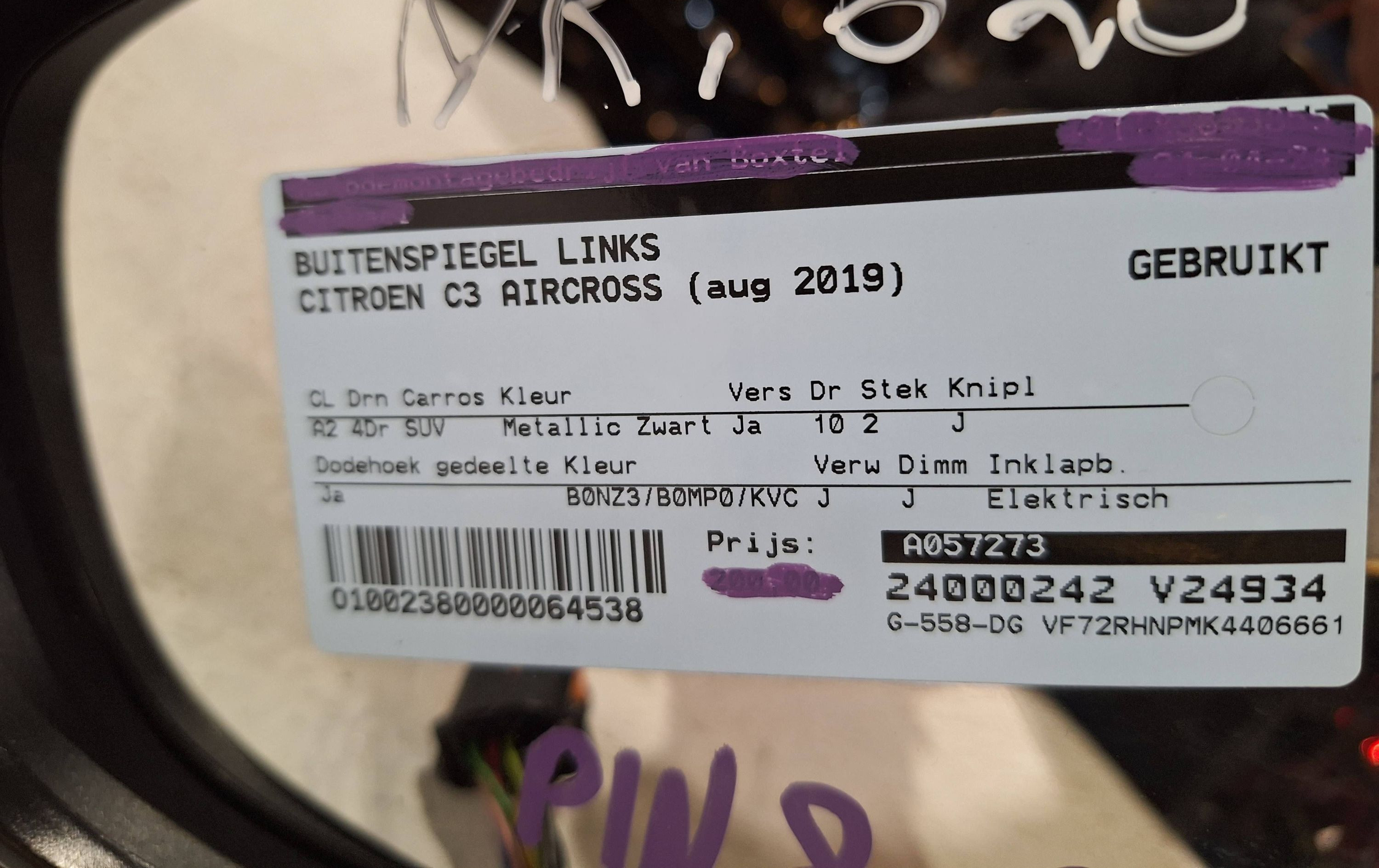 Зеркало электрическое Citroen C3 Aircross 2017 - года