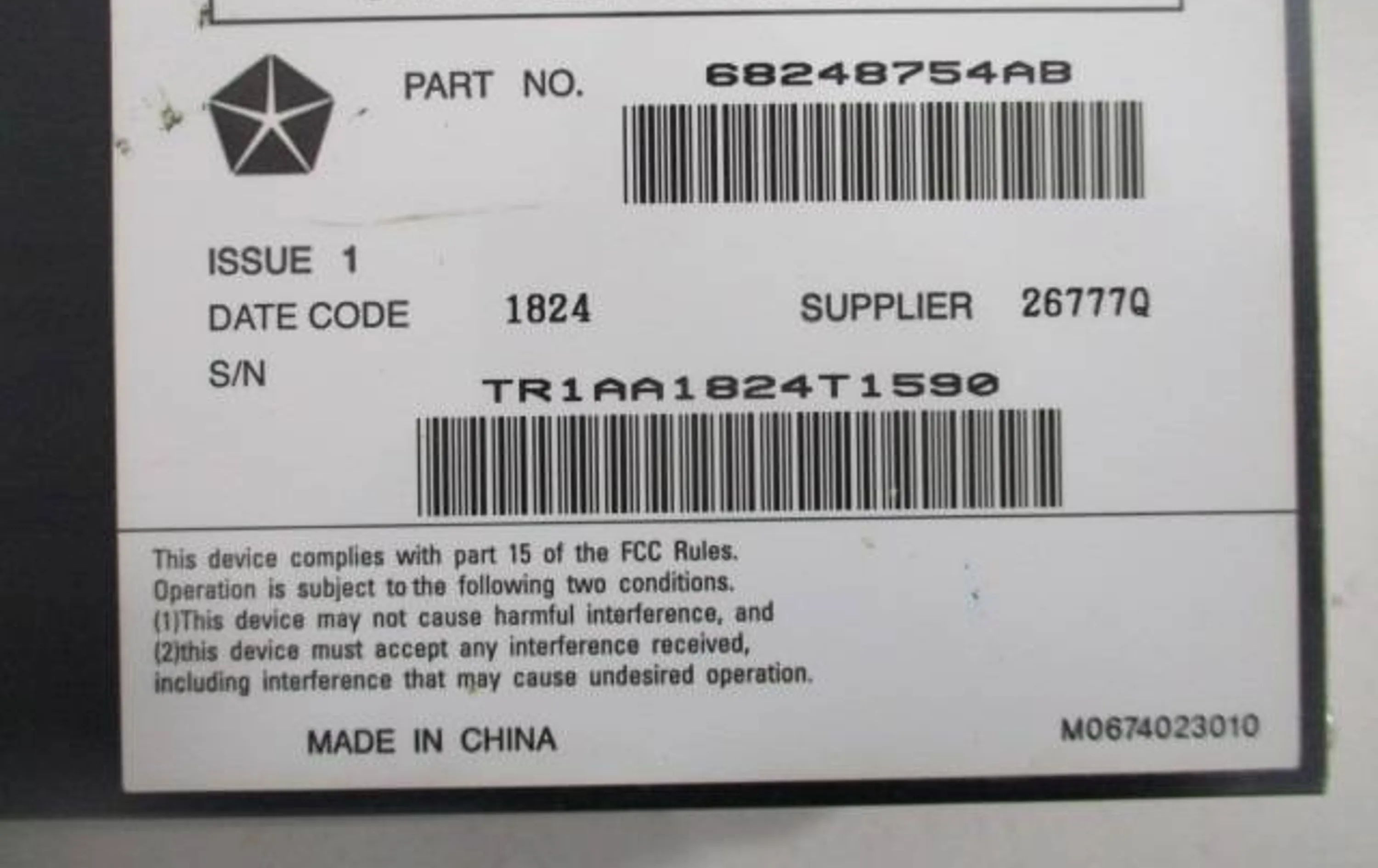 - Код производителя: 68248754AB